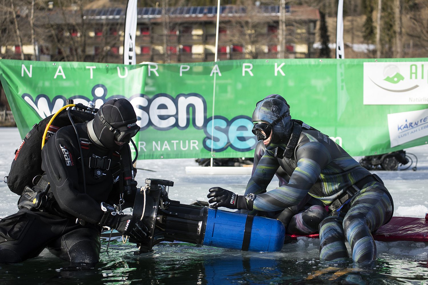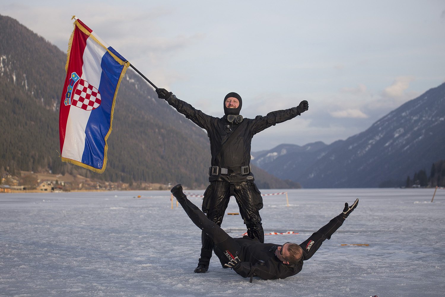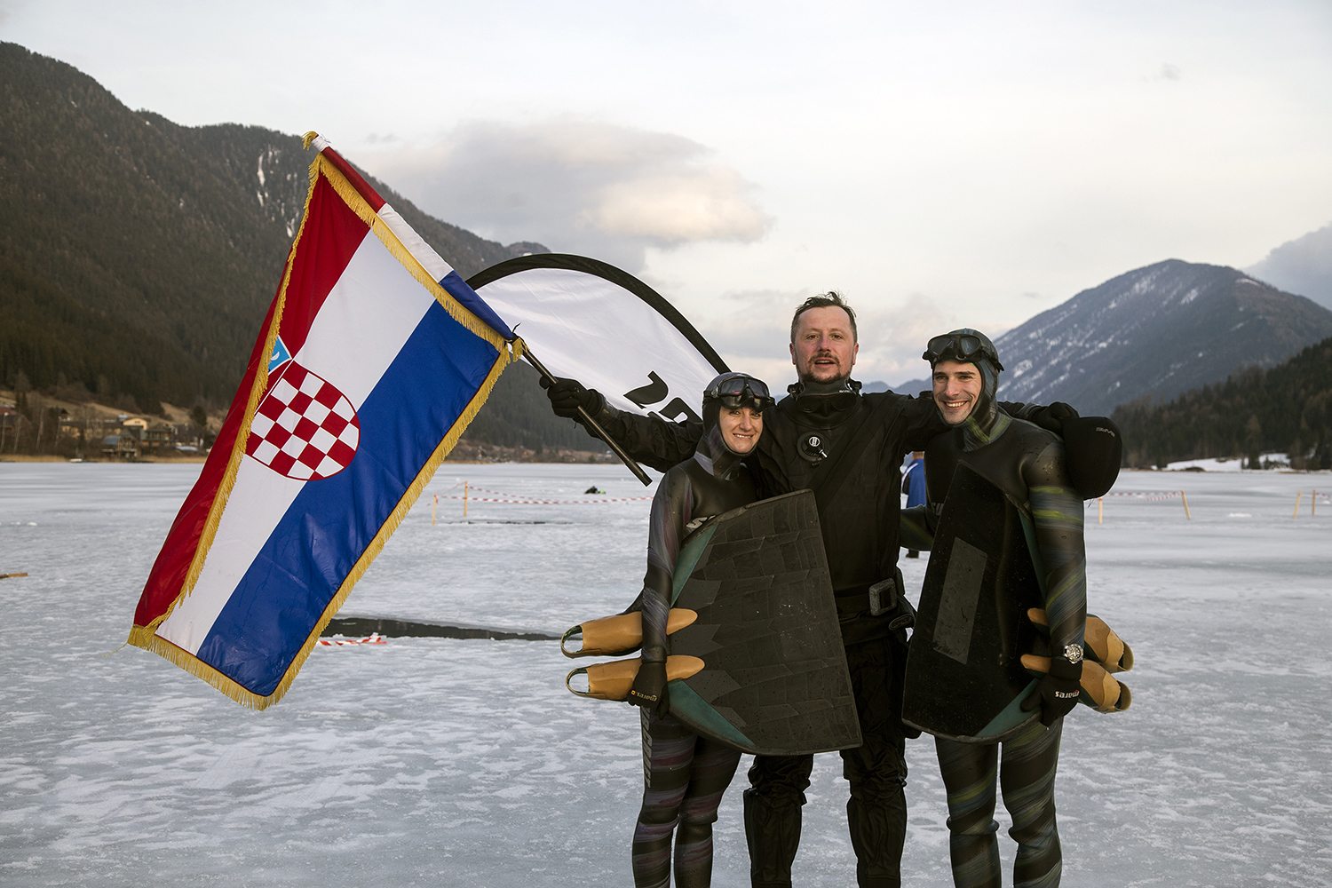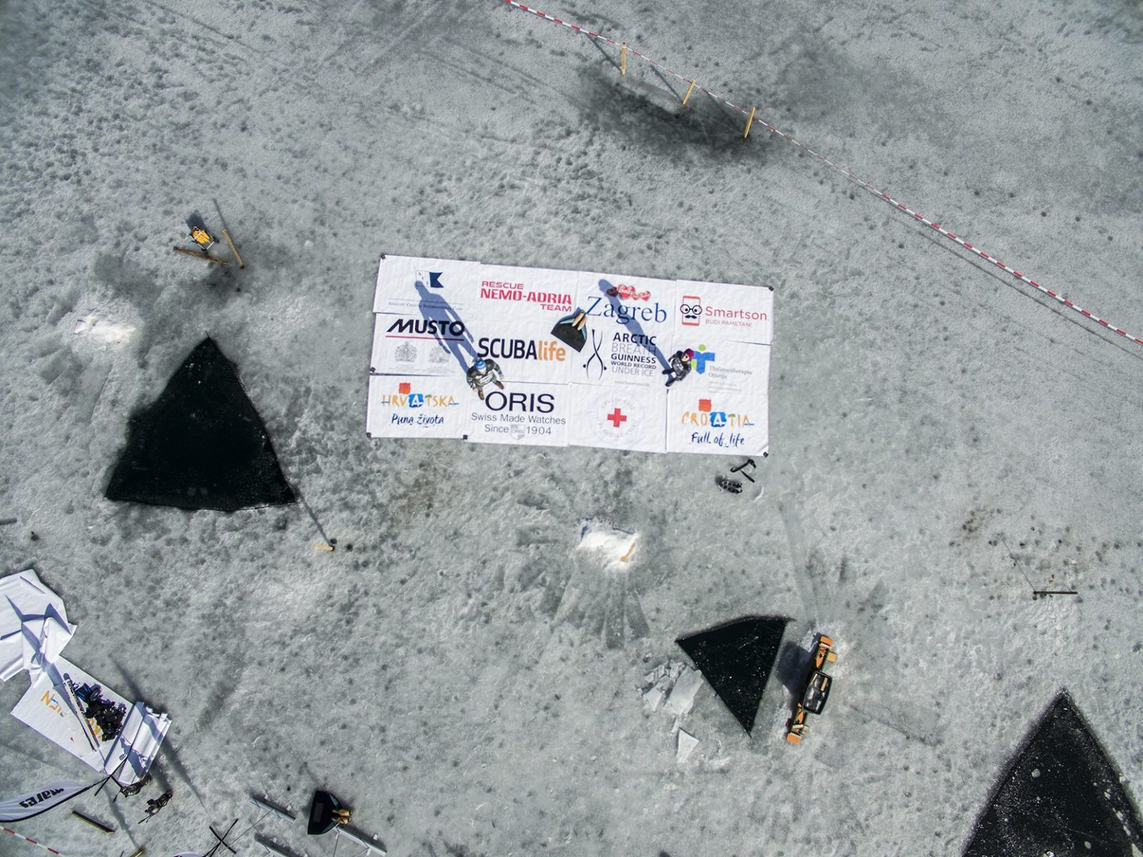 Temperatura vode pod 31 centimetar debelim ledom bila je samo dva stupnja Celzija, a kraj naših freedivera cijelo su vrijeme podvodnim skuterima ronili spasioci ronilačkog tima Nemo Adria pod vodstvom Davora Ostrmana. “Vidljivost ispod leda bila je manja od pet metara. Ukupno je otvoreno 10 rupa na trasi ronjenja, a ispod leda je potegnuto 160 metara konopa koji je označavao trasu ronjenja. Osam sigurnosnih ronilaca Nemo-Adria Rescue Teama pokrivalo je trasu ronjenja, od toga dvoje ronilaca na podvodnim skuterima”, rekao je Davor Ostrman Oscar, voditelj Nemo-Adria Rescue Teama.