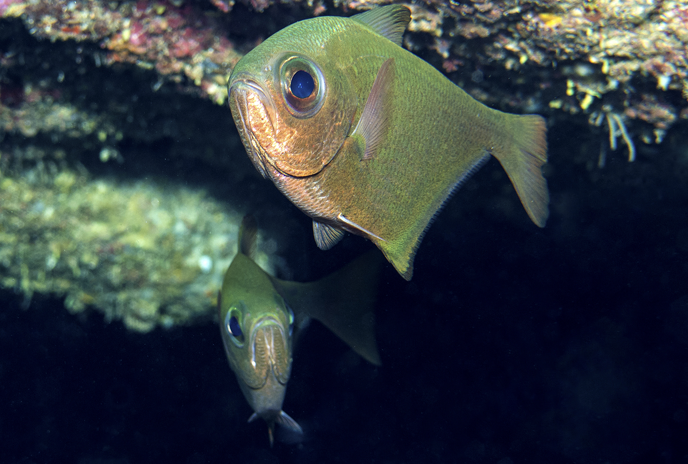 U ovoj i drugim pećinama teško je izbjeći manja jata zelenoleđnoga bivoljeg oka (Pempheris vanicolensis), također invazivne riblje vrste. Ova vrsta je prvi puta zabilježena na Sredozemlju 2011. u Grčkoj.