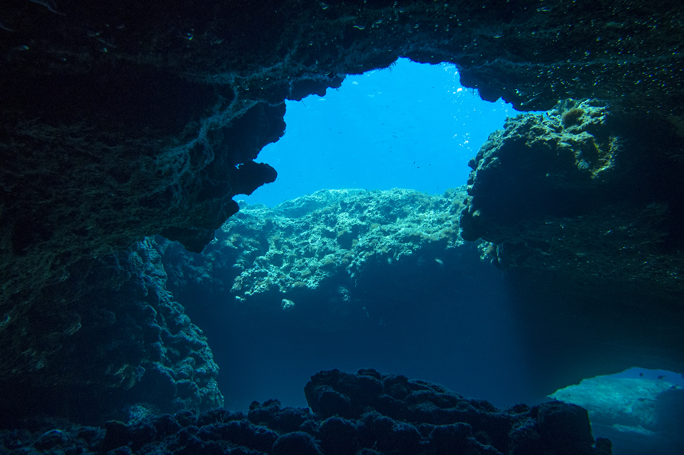 Čast domaće populacije obranila je kirnja i jato gavuna. Kroz cijelo ronjenje se ne prelazi dubinu od 12 metara. Izron je posebno zanimljiv i u duhu cijeloga zarona i naziva lokacije. Izranja se kroz polupećinu koja na vrhu ima dva otvora od kojih se kroz veći može izroniti na površinu na platformu s koje ste i počeli zaron, stoga se sigurnosni zastanak radi u plićini ispred nje. Slijedi strmi uspon do kamioneta i pažljivo skidanje opreme kako bi se čim manje zaprljala od crvene zemlje.