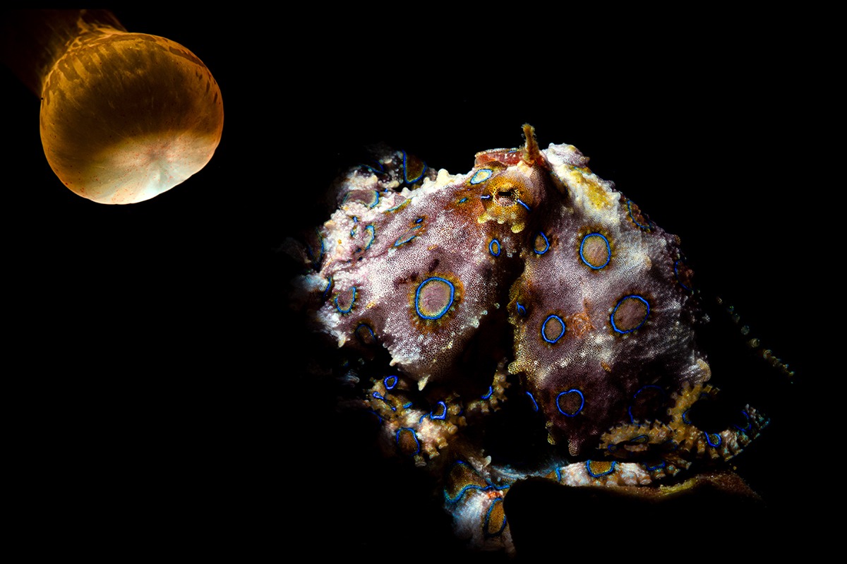 Upravo takav prizor zabilježio je podvodni fotograf Damir Zurub u vodama oko otoka Malapascua gdje su fotografije snimljene u prirodnom staništu ovih fascinantnih životinja. Akvatorij ovog filipinskog otoka poznat je po bogatoj bioraznolikosti i susretima s rijetkim vrstama, a plavoprstenaste hobotnice ovdje nisu neuobičajen prizor za iskusne ronioce koji pažljivo promatraju pješčano dno i skrivene pukotine.