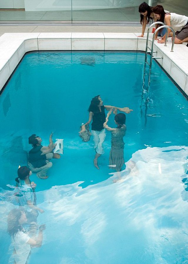 Radi se, naravno, o optičkoj varci za koju je zaslužno 10 centimetara vode smještenih između dva komada prozirnog stakla. Posjetitelji tako mogu “ući u bazen”, koji je ustvari prazna soba, ili se diviti učinku varke gledajući odozgo u “bazen”. Ovaj nevjerojatan koncept djelo je argentinskog umjetnika Leandra Erlicha i dio je stalnog postava Muzeja suvremene umjetnosti 21. stoljeća smještenog u japanskoj Kanazawi.