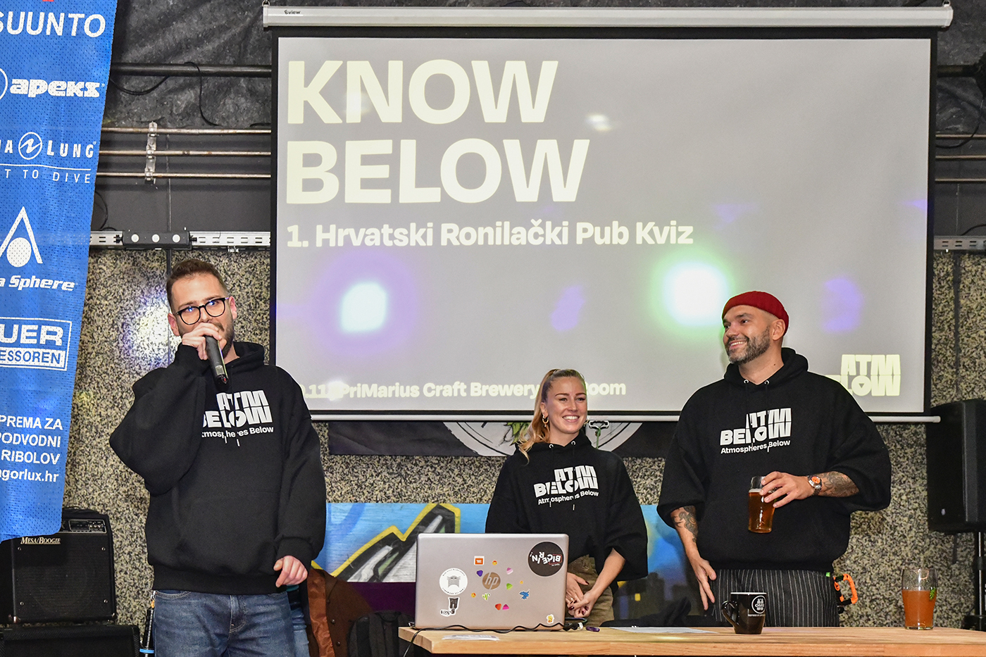 Na prvom ronilačkom pub kvizu u Hrvatskoj nazvanom Know Below natjecalo se osamnaest mješovitih ekipa, pretežito iz Zagreba, no neke su ekipe potegle i iz drugih gradova kao što su Split, Crikvenica, Sisak, Duga Resa i ostali. Uloga voditelja bila je prepuštena poznatoj kvizašici i lovkinji na već kultnoj HRT-ovoj Potjeri, Morani Zibar. Okupilo se nešto više od sto ljudi, od čega je osamdeset sudionika, a ostali su bili predstavnici sponzora i ljudi koji su došli bodriti prijatelje ili možda vidjeti hoće li se ohrabriti za sudjelovanje u idućem ronilačkom pub kvizu.