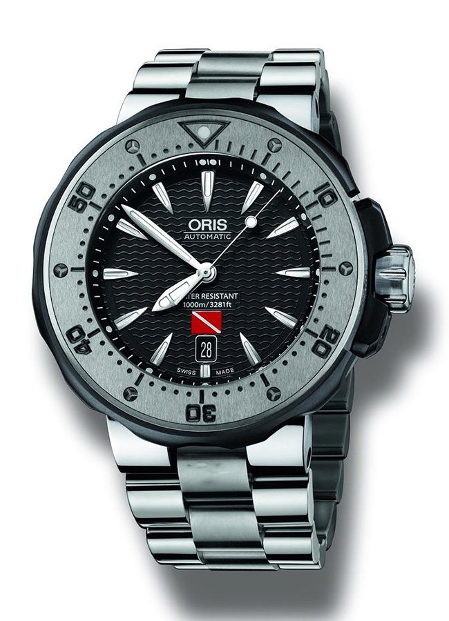 Izgrađen 1944. godine USS Kittiwake služio je 54 godine u brojnim važnim misijama po cijelom svijetu. 2011. godine bojni brod je potopljen na Kajmanskom otočju 20 metara ispod površine vode, kao umjetni greben te služi kao ronilačka atrakcija. Novi Oris Kittiwake Limited izgleda kao spoj trenutačnog Prodiver i Col Moschin ronilačkog modela i barem što se karakteristika tiče, gotovo je identičan. Sat sa 49 milimetara promjera nije baš za svačiju ruku, ali je to i razumljivo budući se radi o profesionalnom ronilačkom satu koji može zaroniti na 1000 metara dubine. Iako dimenzijama spada u malo veće satove, masom pripada lakšoj kategoriji, zahvaljujući upotrebi titana za izradu kućišta i narukvice. Kao i svi high-end Oris modeli i ovaj sat dolazi s patentiranim Orisovim sustavom zaključivanja lunete, kao i štitnicima za krunicu. Brojčanik je vrlo čistog dizajna, s velikim indikatorima ispunjenim iluminacijskom bojom za odličnu čitljivost pod vodom i popularnim “valovitim” uzorkom, koji daje dozu ekskluzivnosti satu. Pozadinu sata krasi logo USS Kittiwake broda te ugraviran limited broj primjerka. Oris Kittiwake proizveden je u samo 500 primjeraka, a za svaki prodani donirat će se određeni iznos za održavanje Kittiwake Reef projekta. Uputite li se na ronjenje na Kajmansko otočje, svakako zaronite na USS Kittiwake i zavirite u strojarnicu broda – vidjet ćete ploču s Orisovom posvetom!