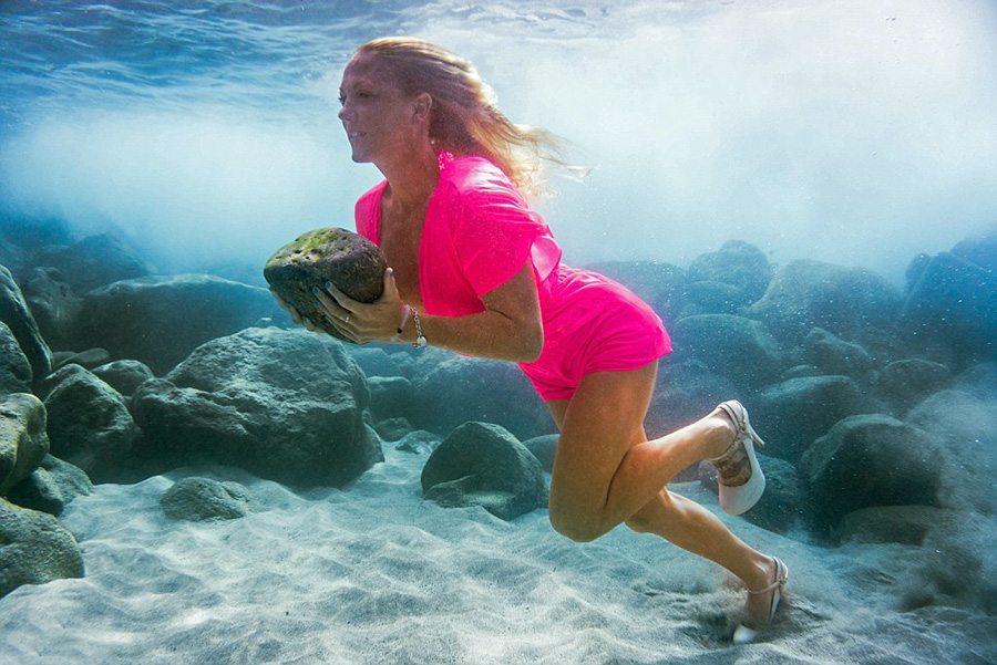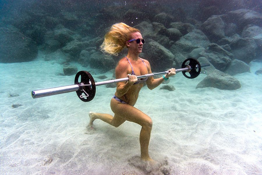 Ideju je dobila kada je promatrala lokalno stanovništvo u različitim sportskim aktivnostima u oceanu. “Puno ljudi na Havajima podiže kamenje ispod vode, no nisam vidjela nikoga da vježba s pravim utezima u vodi pa sam pomislila kako bi to bio originalan koncept. Utezi i šipka koje vidite na slici teže 30 kilograma, a samo snimanje trajalo je oko sat i pol.”, kazala je autorica fotografija.