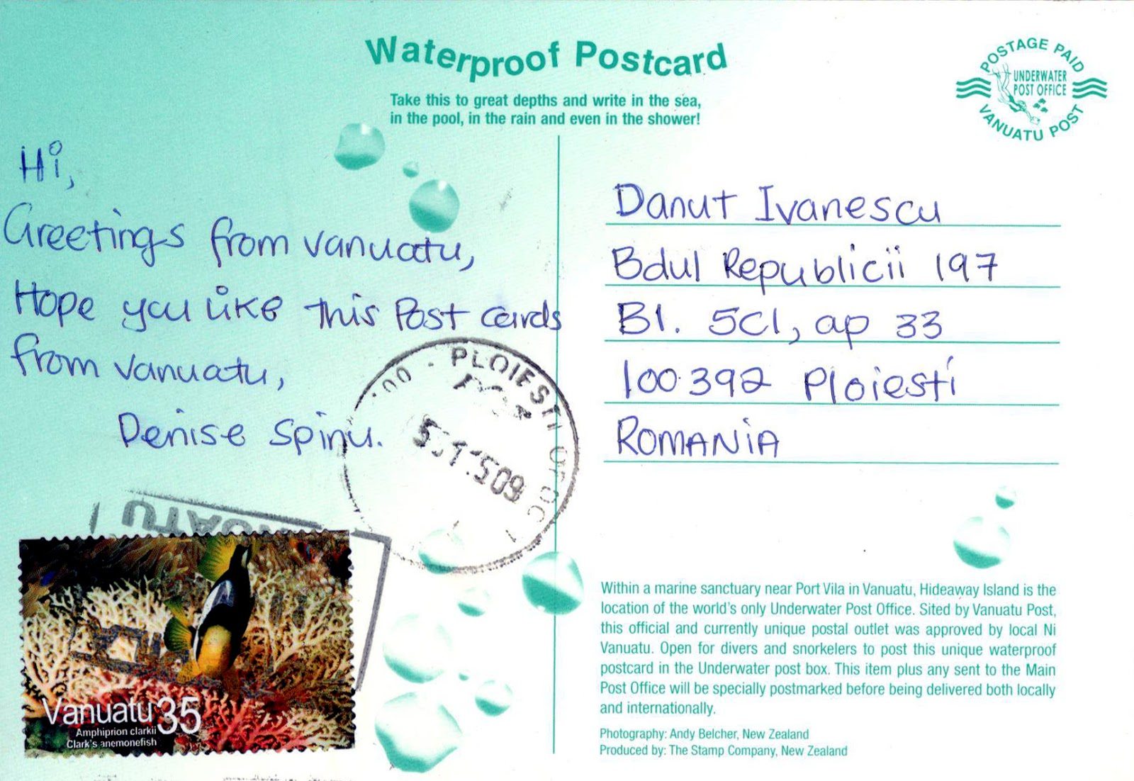 Poštanski sandučić na ovom otoku postavljen je 2003. godine na dubini od tri metra. Posjetitelji također mogu ubaciti vodootporne razglednice u njega, ili zamoliti djelatnika da zaroni umjesto njih i ubaci poštu. Naravno, pošta se iz ovog sandučića također otprema svakog dana.