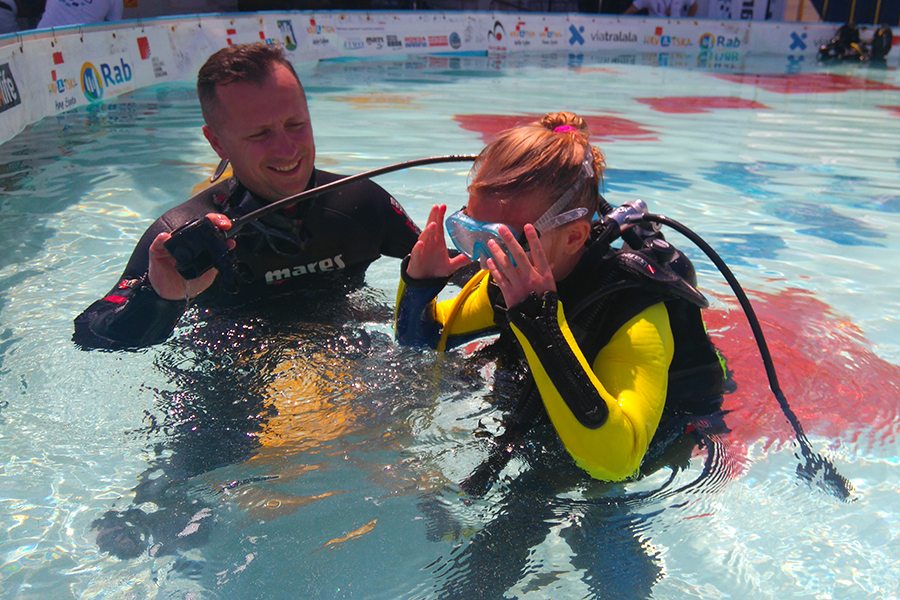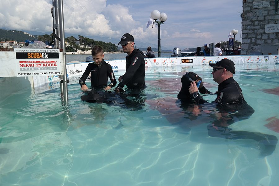 Uz instruktore ronilačkog kluba HRVI Nemo Adriatic svi zainteresirani posjetitelji projekta Pogled u plavo po prvi put su pod punom ronilačkom opremom “prodisali” pod vodom i upoznali čari ronjenja. U najvećem montažnom bazenu u ovom dijelu Europe stvarnom doživljaju dubine pridonijele su i podvodne fotografije poznatog hrvatskog podvodnog fotografa Marjana Radovića.