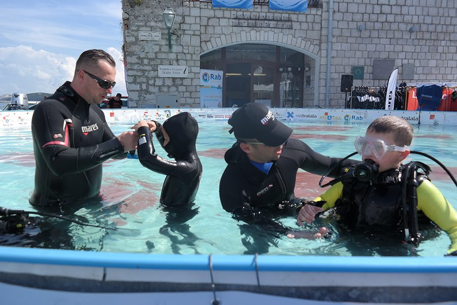 Više od 200 mališana ovog je vikenda iskoristilo priliku i zaronilo u bazenu na glavnom trgu grada Raba.