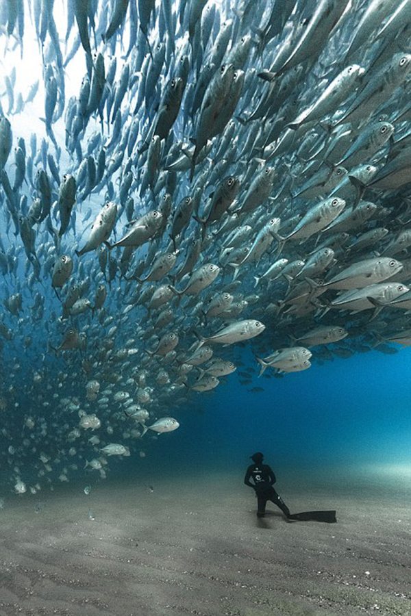 Fotografije su nastale tijekom ronjenja u morskom zaštićenom području Cabo Pulmo u blizini obale Baja Kalifornija u Meksiku. Ovaj 50-godišnji ronilac sudjelovao je u projektu označavanja morskih pasa u regiji kada se našao preplavljen ribama koje su formirale čudesan vrtlog. “Fotografije, nastale uz prirodno osvjetljenje, pokazuju što se može dogoditi kada stvorite morsko zaštićeno područje kojim učinkovito upravljate”, kazao je Winram.