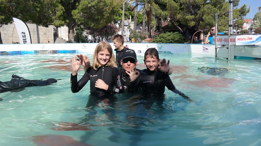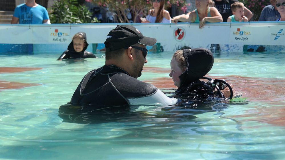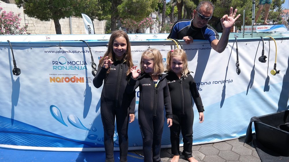 U organizaciji Promocije ronjenja i PŠU “Peliška jedra”, ronilačke sekcije, “Pogled u plavo” omogućio je da više od 300 djece besplatno zaroni u bazen i pod vodom promatra izložbu fotografija ljepota hrvatskog podmorja za koju je zaslužan poznati hrvatski podvodni fotograf Marjan Radović.