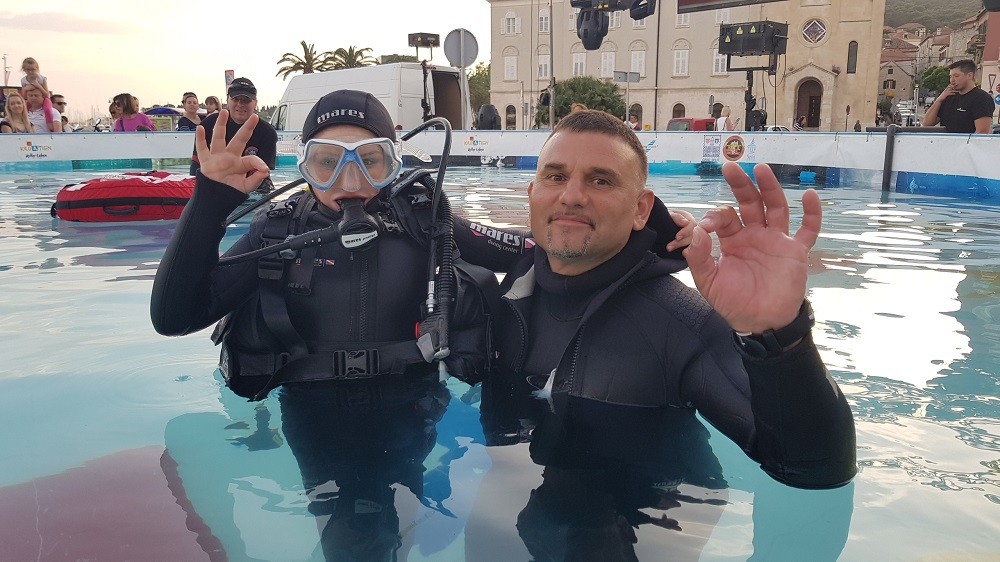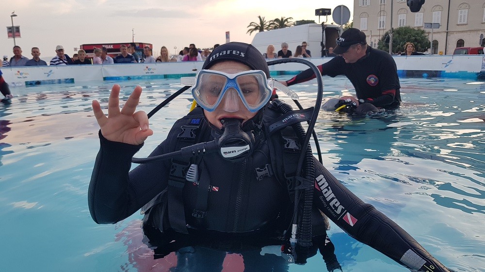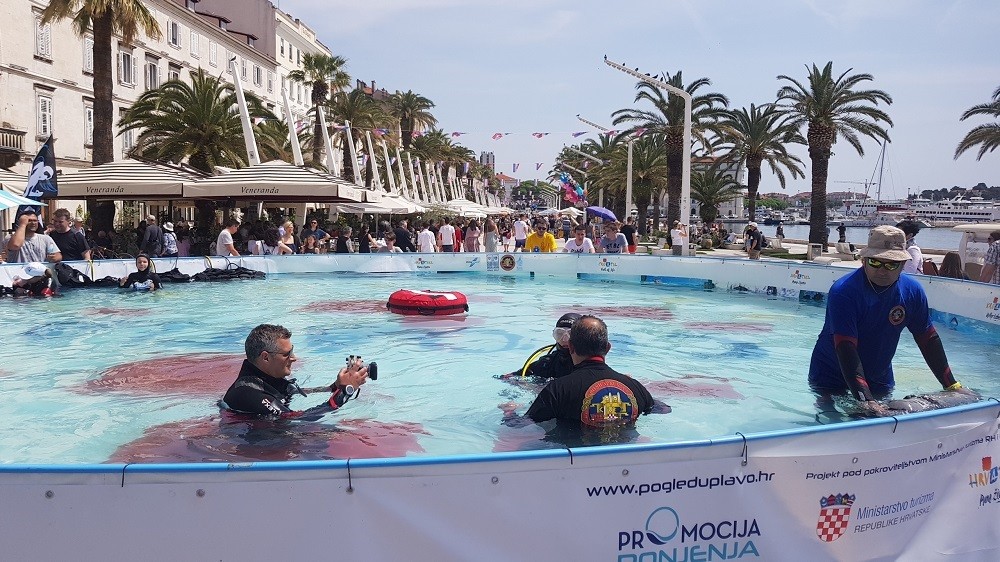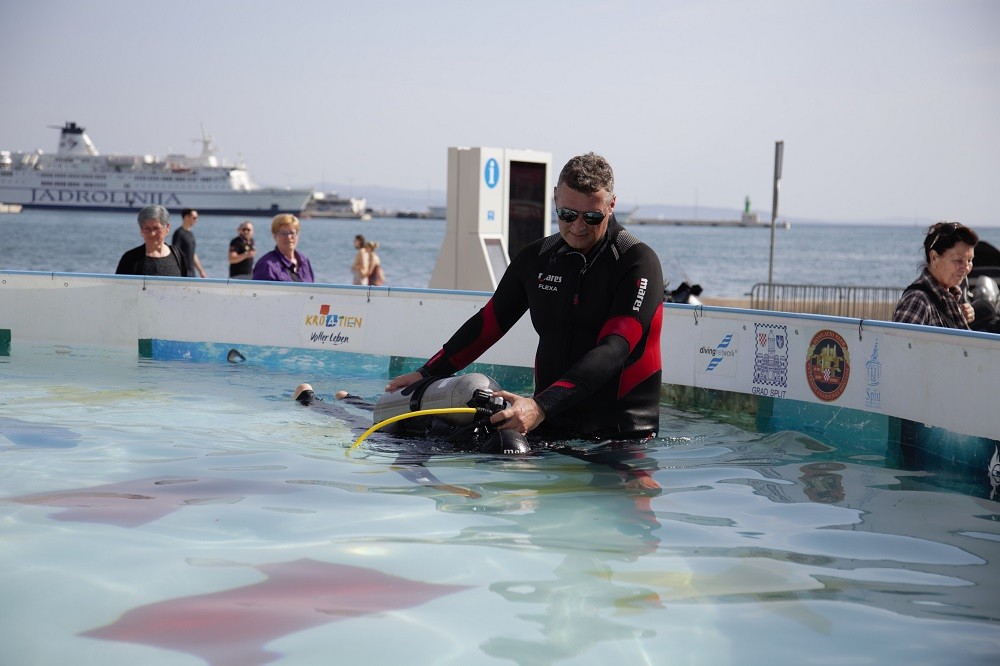 Tijekom prošlog vikenda na splitskoj Rivi bio je montiran najveći bazen u ovom dijelom Europe u kojem je potpuno besplatno zaronilo preko 400 osoba koje su imale priliku osjetiti čari ronjenja i s nestrpljenjem iščekivali svoj prvi zaron s punom ronilačkom opremom u kontroliranim uvjetima. “Ovo je bilo vrlo neobično iskustvo, a posebno me se dojmila podvodna izložba fotografija unutar bazena. Ronjenje s bocom je doista fantastično, a vrlo rado bi upisao i tečaj ronjenja”, rekao je Ivan, student kineziološkog fakulteta u Splitu. Projekt”Pogled u plavo”gostovao je prvi put u Splitu i sve ovo ne bi bilo moguće bez velike podrške Grada Splita i Turističke zajednice grada Splita, a cilj ove manifestacije je potaknuti što veći broj osoba na bavljenje vodenim aktivnostima.