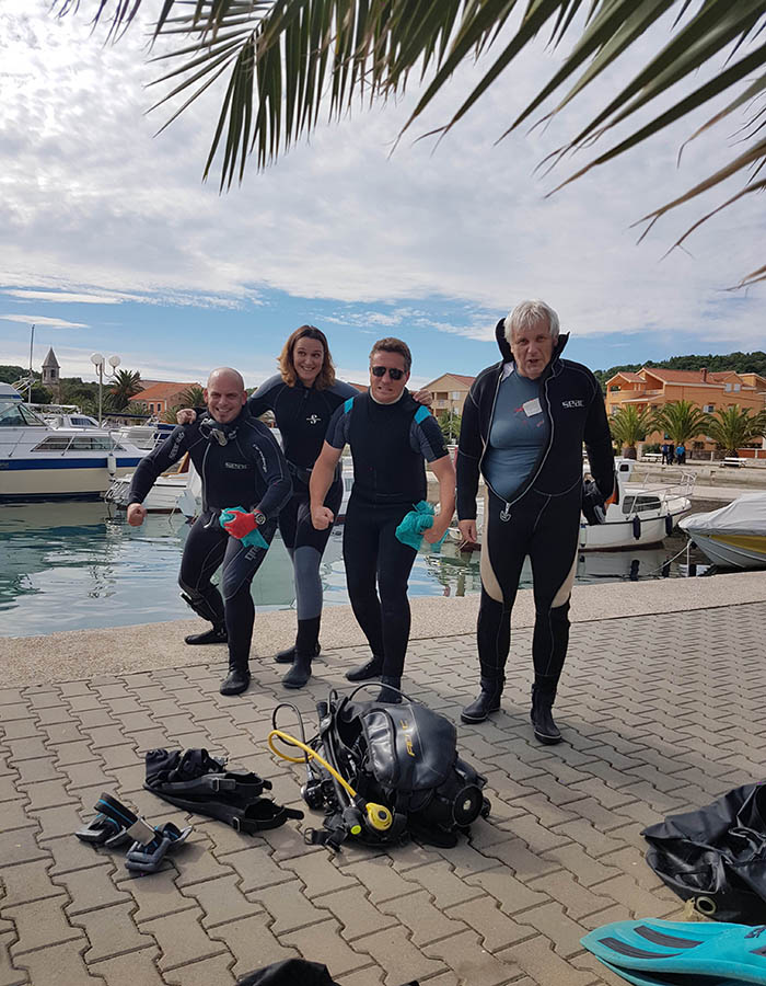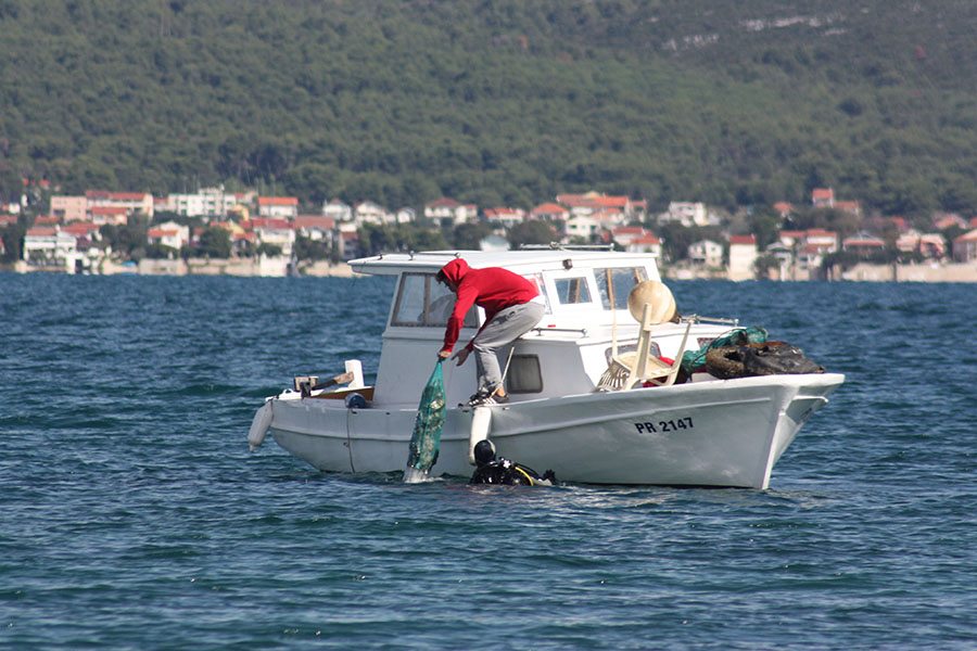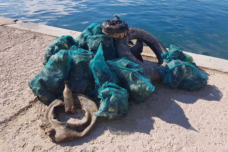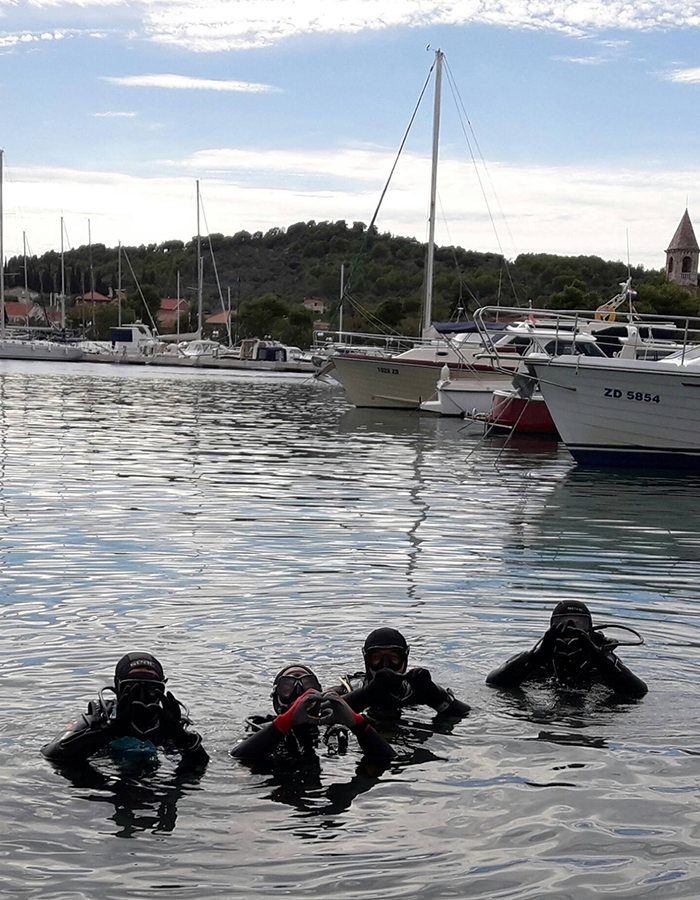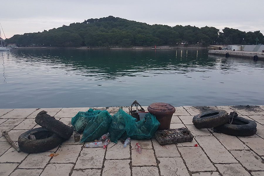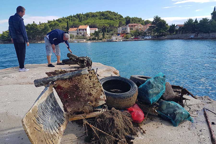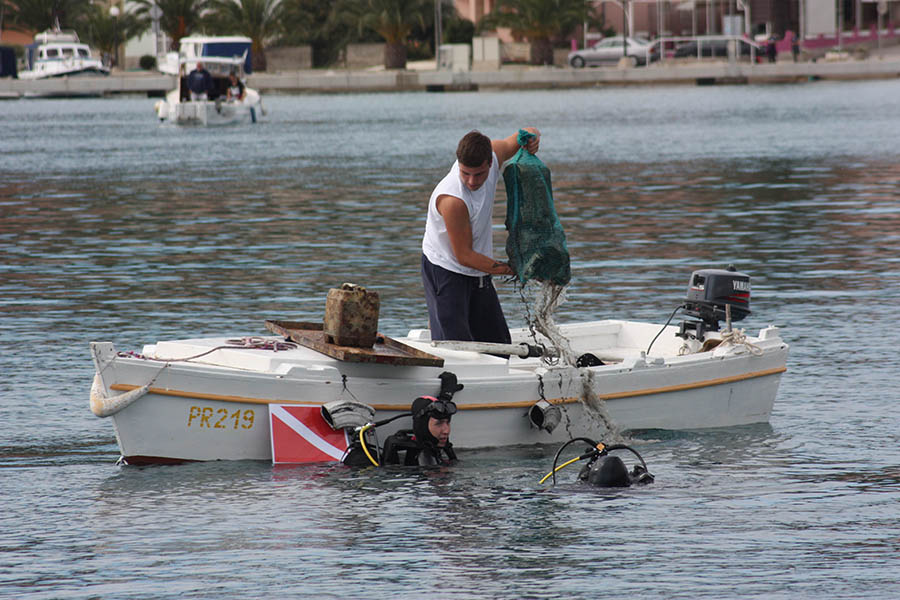 Akciji su se pridružili i članovi Kluba podvodnih djelatnosti INA Kostrena iz Kostrene, Kluba podvodnih aktivnosti Marsonia iz Slavonskog Broda, Udruge podvodnih aktivnosti Rostrum iz Splita, Ronilačkog kluba Sv. Roko iz Bibinja te Kluba podvodnih aktivnosti Vodomar iz Duge Rese. Ukupno 50-ak ronilaca i još 10-ak lokalnih volontera tijekom dvodnevnog ronjenje izvuklo je oko 1200 kilograma raznog otpada, od uobičajenih plastičnih i staklenih boca te limenki i ostalog sitnog smeća (ukupno oko 200 vreća), preko automobilskih i kamionskih guma, do vrlo neuobičajenih brodskih konopa (čak i s osovinama), raznih dijelova brodske opreme poput vanbrodskog motora i spremnika za vodu, bojlera, miješalice za beton, madraca, stolica, ležaljki, ljestvi, umivaonika, ručnog glačala, žice za sušenje rublja, gramofonskih ploča, baterija… Ronioci su pronašli čak i dvije ručne bombe! Policija je nakon prijave izašla na uviđaj te će specijalna postrojba ronilaca pirotehničara morati doći ukloniti navedene eksplozivne naprave. Obje su bombe pronađene na vrlo frekventnim lokacijama na dubini od oko tri metra, nekoliko metara od obale, što znači da se vrlo lako moglo dogoditi da netko za njih zapne udicom ili sidrom. Nažalost, slučajevi pronalaska oružja pod vodom nisu rijetka pojava. Uopće je odlaganje bilo kakvog otpada u okoliš vrlo loša praksa, no ovakvo odlaganje oružja je posebno neodgovorno, pogotovo jer policija i dalje ima program predaje istog bez ikakvih posljedica. Ovim putem apeliramo na sve koji možda još posjeduju išta slično da predaju to najbližoj policijskoj postaji kako ne bi ugrožavali sebe i svoje bližnje, ali ni slučajne prolaznike.