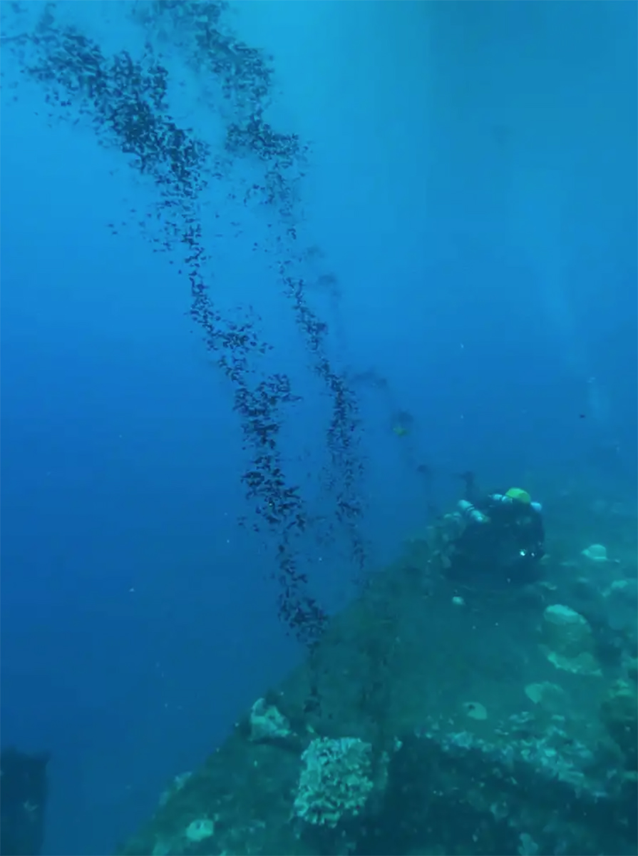 No, sada je skupina ronilaca primijetila veliko curenje nafte iz olupine broda Rio de Janeiro Maru koji je bio japanski paketni brod izgrađen 1929. godine i izvorno korišten za prijevoz japanskih imigranata u Brazil. Rekvirirala ga je japanska carska mornarica u listopadu 1940. i pretvoren je u naoružani transportni brod, a kasnije preuređen u podmornički tender. Potopila ga je bomba od 450 kilograma 17. veljače 1944., prvog dana operacije Hailstone.