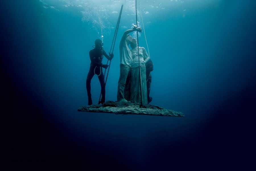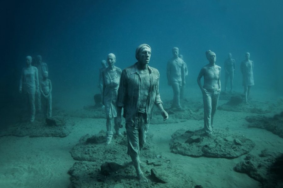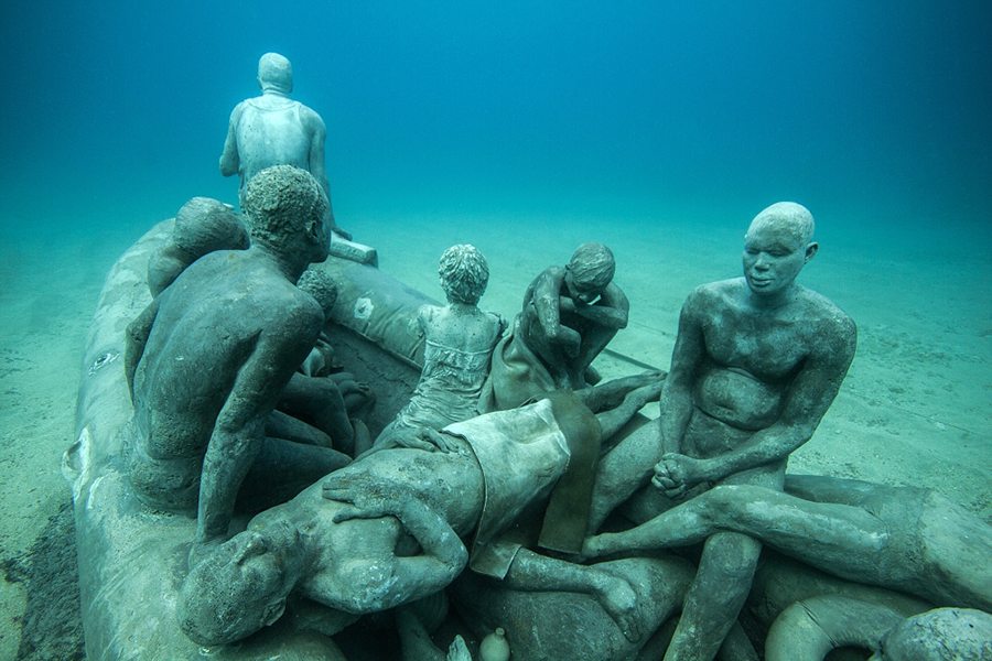 Izrazito realistične skulpture ljudi djelo su britanskog umjetnika Jasona deCairesa Taylora, autora poznatih podvodnih muzeja u Cancunu u Meksiku i parka skulptura kod zapadne obale Grenade. Skulpture postavljene na morskome dnu na dubini od 12 do 15 metara izrađene su od pH neutralnog morskog cementa, a ljudska obličja vremenom će privući morski život i stvoriti umjetne grebene pune života. Među prvim izložbenim primjercima potopljena je i skulptura para bez lica koji snima “selfie” te čamac koji prevozi 13 izbjeglica, a neki izložbeni primjerci predstavljaju stanovnike otoka Lanzarote. Svi oni dio su nove “Instagram generacije” i zajedno će koračati podmorjem prema velikom zidu postavljenom na ulasku u zamišljeni grad (Europu) koji predstavlja točku bez povratka. Taylor je kazao kako želi da muzej bude posvećen onima koji uspiju, ali i onima čiji “snovi i nade ostaju na dnu mora”, stoji u priopćenju koje je dao lokalnim medijima.