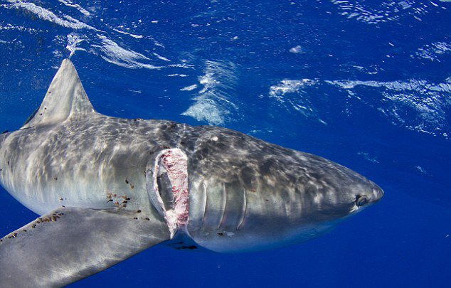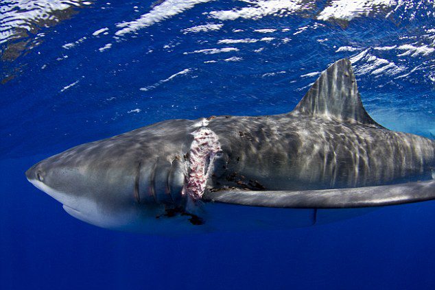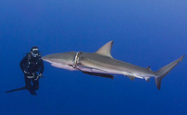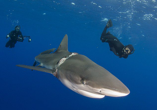 Morski pas, očito već duže vrijeme zapleten u konop ribarske mreže, počeo je gubiti bitku za život. Debeli konop duboko mu se usjekao u tijelo i onemogućavao normalno plivanje. Stoga je morski pas počeo tonuti.