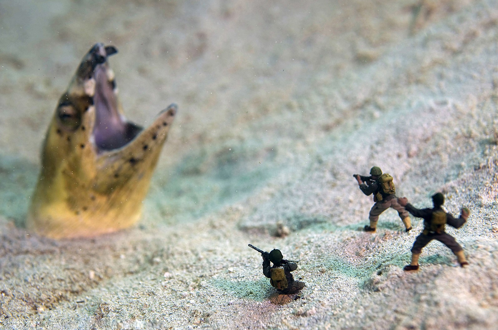 Jason Isley, originalno iz Essexa, živi na otoku Borneo već više od 20 godina. Figurice priprema u svome uredu, a prizori koje priređuje pod vodom jedinstveni su i naizgled jednostavni. Radi se tu često o uobičajenim stvarima poput “sunčanja” na dnu oceana, ali i nekim kompliciranijim kadrovima koji zahtijevaju malo više mašte i truda. Jason je uspio fotografirati preko 80 prizora, a zahtjevnost njihove pripreme proteže se od 10 minuta do tri dana.