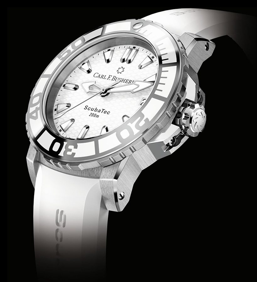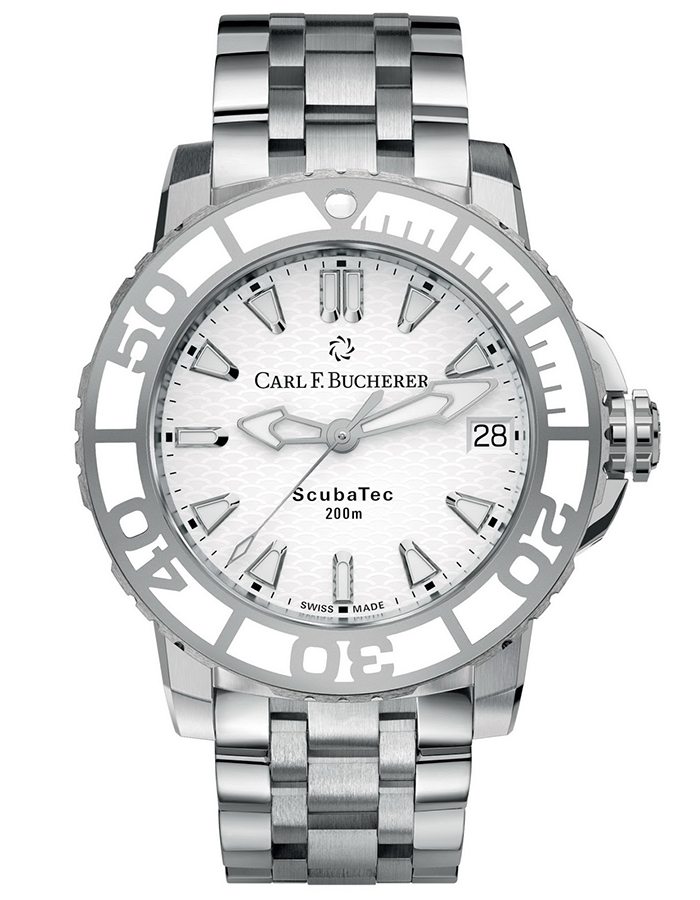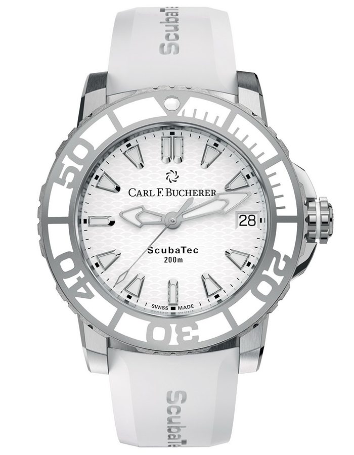 Ovaj put Carl F. Bucherer upotpunio je kolekciju Patravi ScubaTec namijenjenu roniocima modelom za prave SCUBA dame. Radi se o ženstvenom primjerku pravog ronilačkog instrumenta s naglašenim feminiziranim dizajnom i bijelom bojom. Promjer kućišta od 36.5 milimetara te debljina od 11.37 milimetara također odaju da je riječ o modelu za ljepši spol, a nehrđajući čelik i keramika odličan su izbor materijala za dame zaljubljene u modre dubine. Narukvicu je moguće birati, ovisno o željama, u izvedbi od nehrđajućeg čelika s prilagodljivom ronilačkom kopčom ili u varijanti od vulkanizirane gume, također s prilagodljivom ronilačkom kopčom. Staklo je safirno, antireflektirajuće, a na brojčaniku se i u dubini s lakoćom očitavaju sati, minute, sekunde i datum. Naravno, za dobru vidljivost brojeva na brojčaniku i jednosmjerno rotirajućem ronilačkom prstenu u tami zaslužan je Super-LumiNova premaz. Mehanizam koji pokreće ovaj damski model je samonavijajući caliber CFB 1950 s rezervom snage od 38 sati.