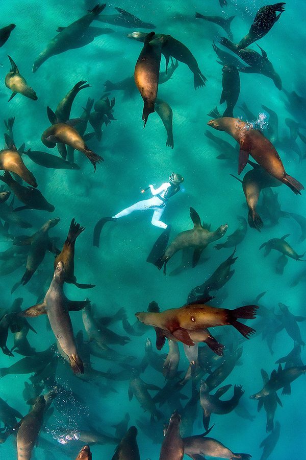 Na njima se većinom vidi njegova partnerica Sandy van Water tijekom igre s kalifornijskim morskim lavovima koje ubrajamo među najinteligentnija stvorenja u oceanima. Van Uffelen, inače dobitnik nagrade National Geographica za fotografiju, sa svojom je partnericom tragao za kitovima, ali je naišao na koloniju morskih lavova.